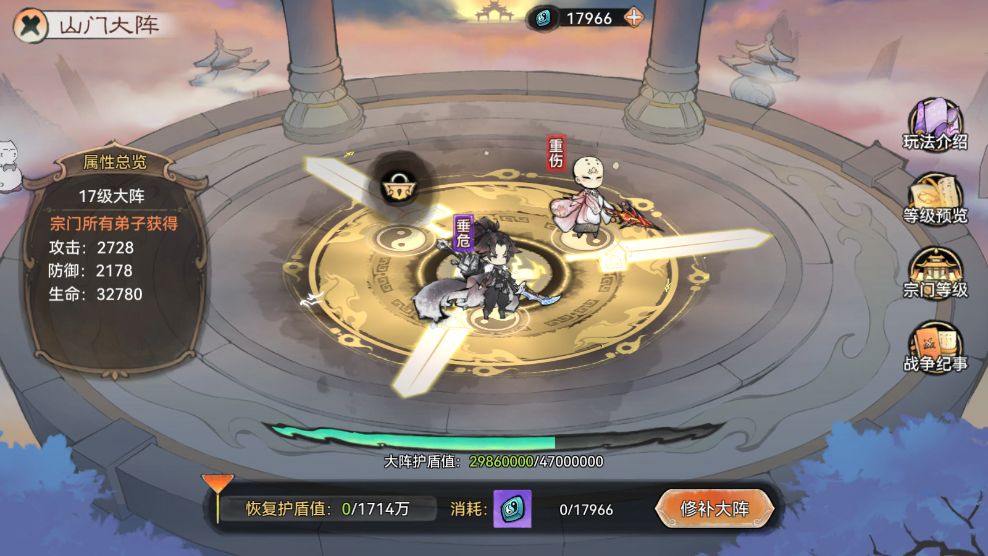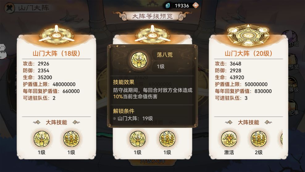 随着祖师的宗门等级达到32级,宗门会开启山门大阵功能,为宗门提供一定的保护能力。