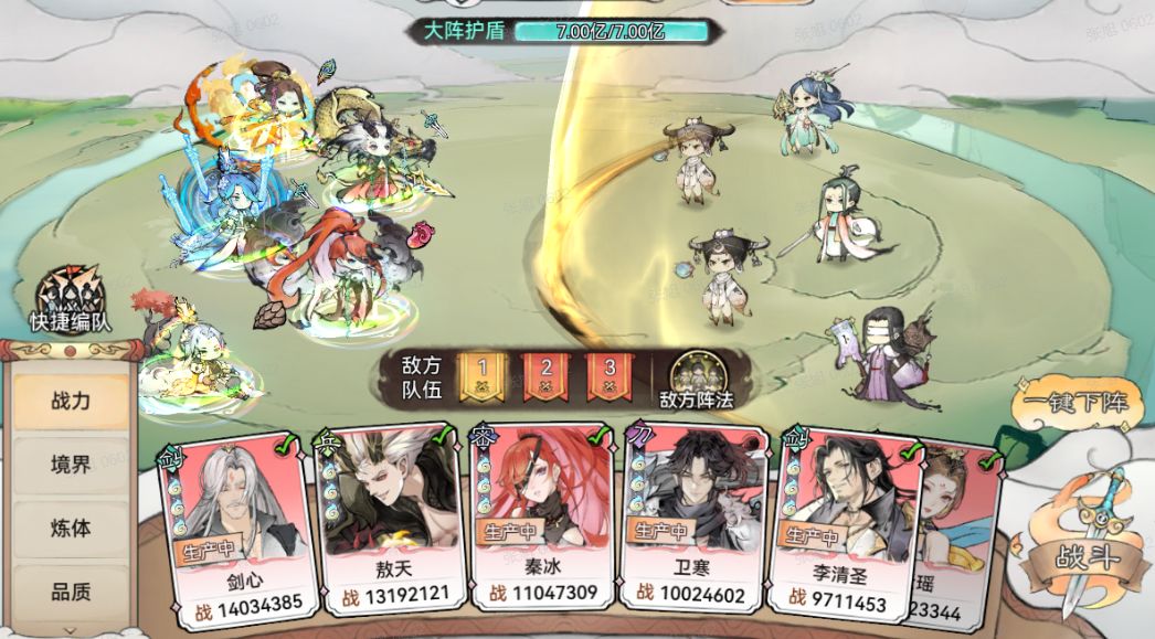 在战争期间,祖师可以不断派遣弟子前往袭击敌方宗门。每次袭击最多可派遣3支队伍,3支队伍将轮番上阵,与敌宗弟子进行战斗。