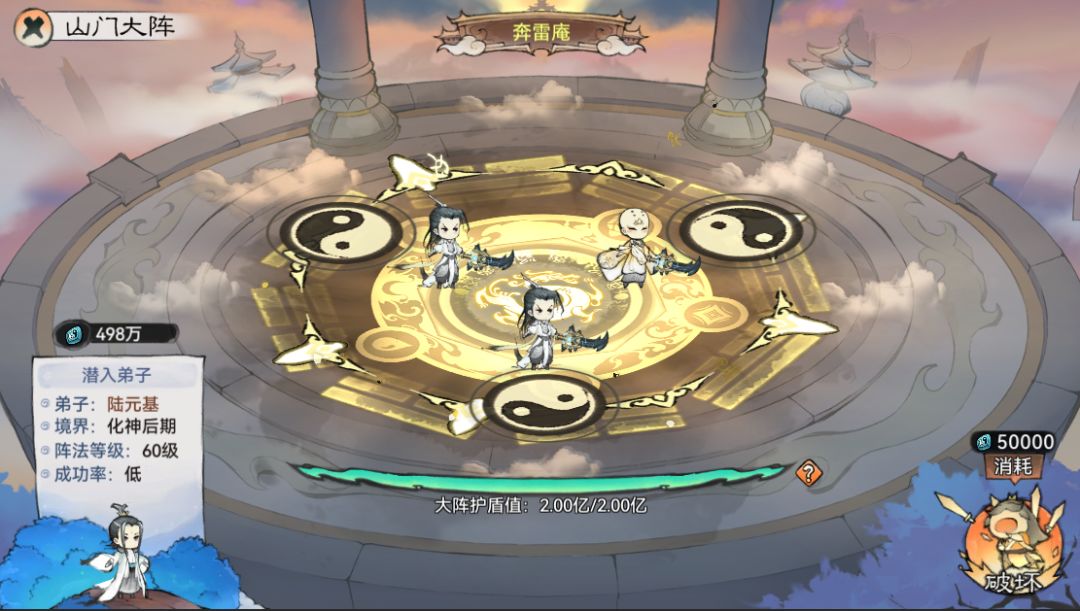 潜入弟子的境界和阵法等级会影响破坏的成功率。