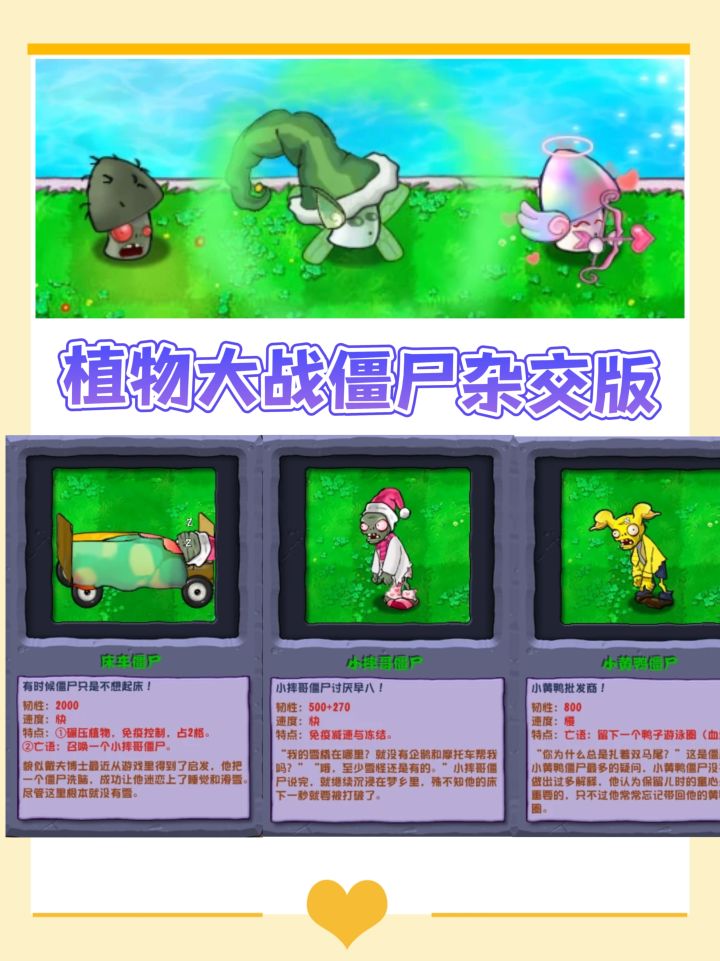 有豌豆僵尸、小黄鸭僵尸、女王向日葵