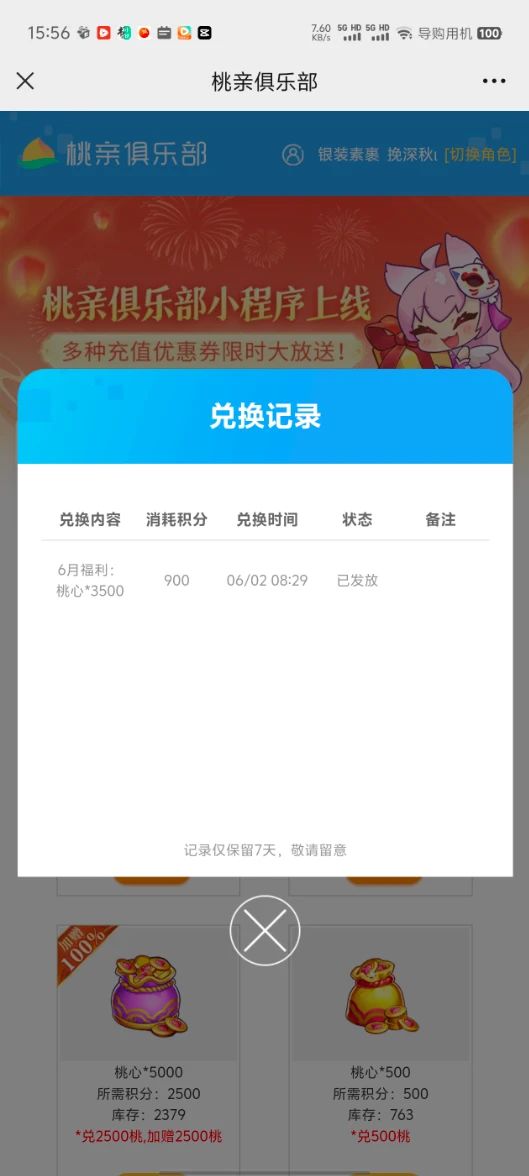 另外就是他的桃心俱乐部,只要你是官方正版的桃花源记手游,每一次的充值都会有充值积分在淘新俱乐部,大约就是1:1.12左右,每个月的福利都有着900积分兑换3500桃,当然还有更划算的,1万积分兑换4万桃,对于普通玩家来说,太过于遥远,不太容易实现!每个月拿上一个900积分兑换3500套,就已经是美滋滋了!