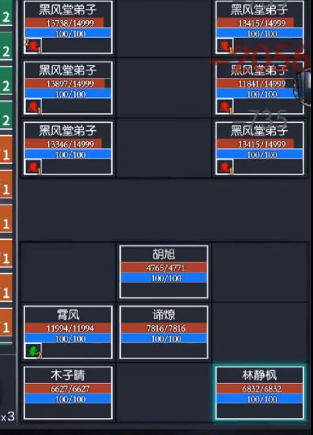 阵容解析:狼天风给主角减少普渡杖法的技能前摇,普渡杖法可打击目标及其后发敌人,并且有林静枫辅助输出。前排选择胖仔客+素素,有不错的续航能力,即使扛不住,胖仔客第一武学可以免死加素素回血可以抗很久。