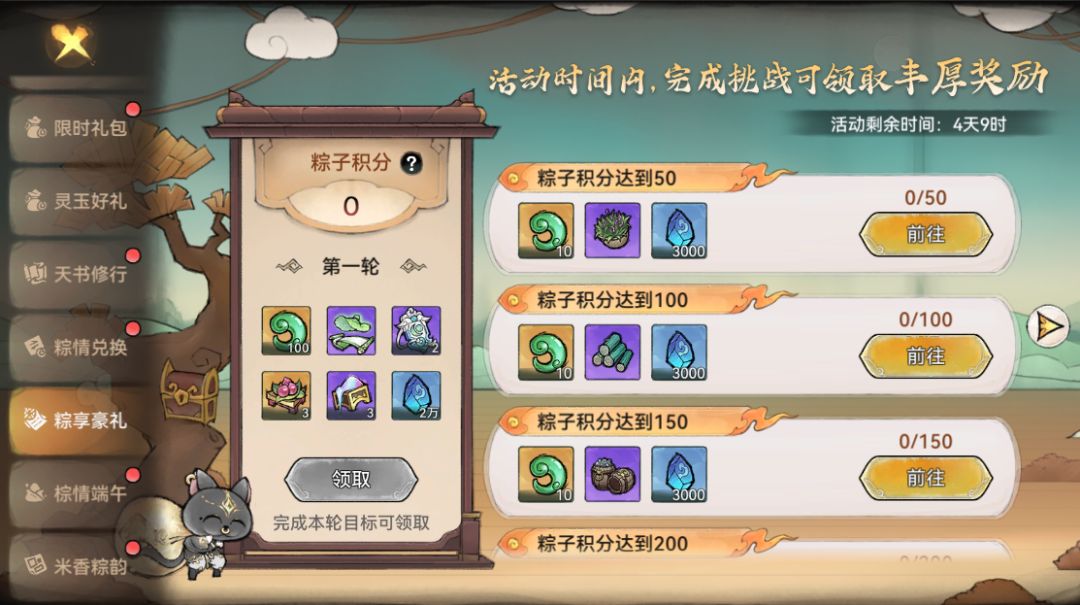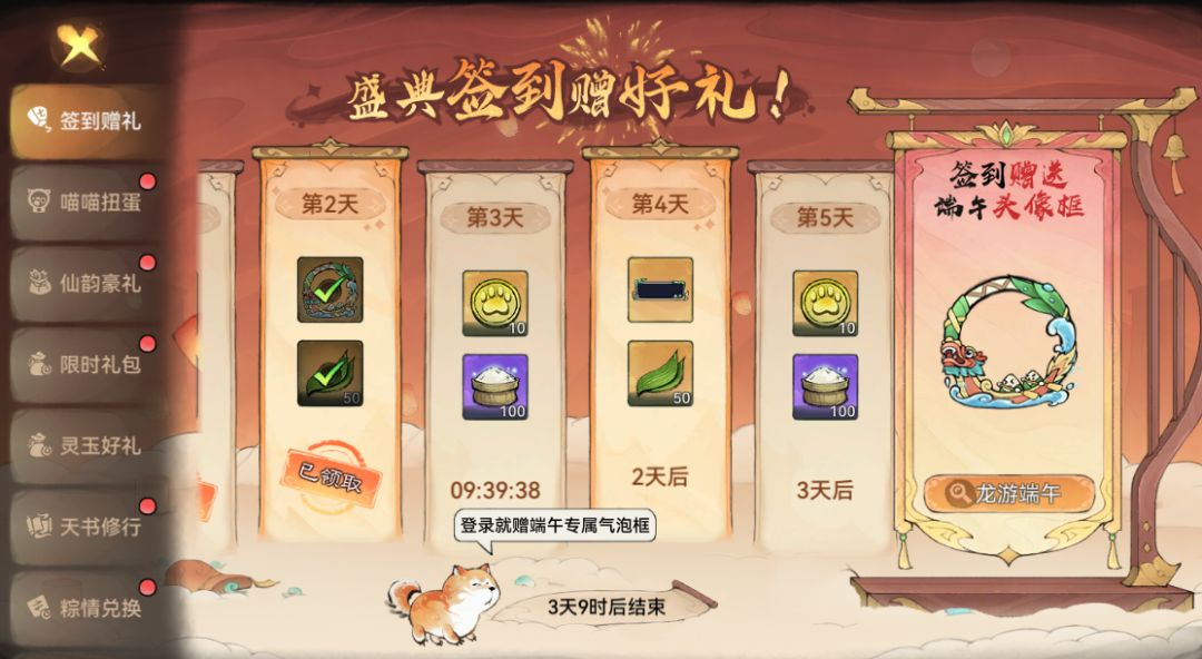 端午节马上就到了,猫子们给各位祖师准备了丰富的活动,包含签到送礼、喵喵扭蛋,以及天书修行等丰富内容,一起来看看吧~