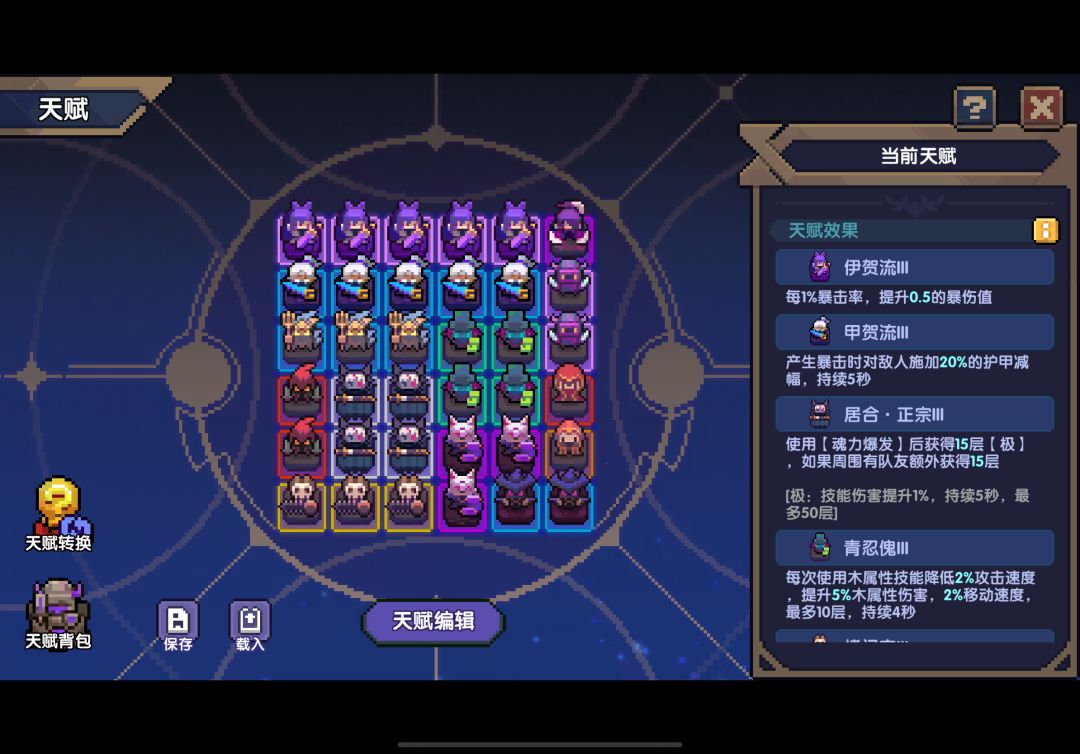 大格子的核心天赋必不可少!小格子的天赋可以根据自己属性上来弥补面板上的短板。