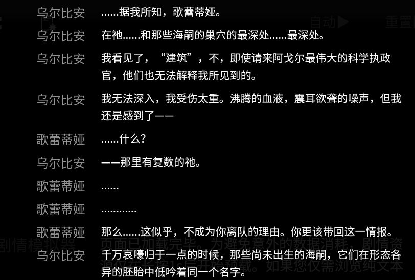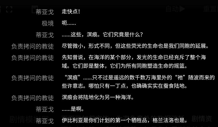 #生路 深海二期的故事主要是讲沿着邪教的故事一路追溯到了一艘船上,这艘船已经成为了一种海嗣的根据地,在上面寻找到更多海嗣宗教做的事情和当初阿戈尔的秘密,而乌尔比安