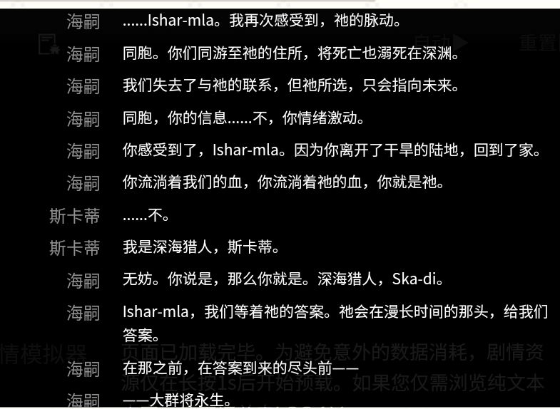 但是现在剧情中的海嗣已经演变成了一种灾害一样的东西,这明显和前文明缔造深蓝的目的完全相悖了。好像前文明的几个计划都陆续被某种无形的手破坏,源石计划也同理,博士醒来后第一句话就是“源石不应该是如今的样子”,甚至不断用源石切割自己来完整源石究竟出了什么问题。这个不过多深入展开,我们继续说深海。