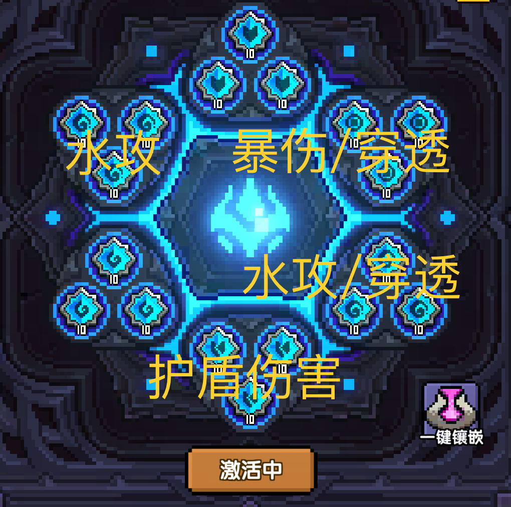 点满水攻暴伤穿透暴击值即可。多余暴击值也可以转换为对应暴伤,多出来的加点平均分配攻强。