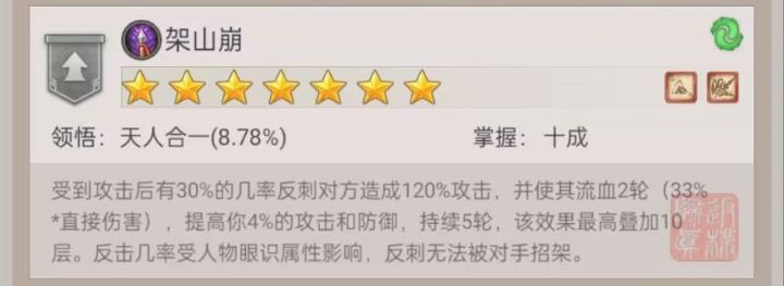 24年初,架山崩迎来一波史诗级加强,概率提升,buff由25%招架变成十层最高40%攻防。