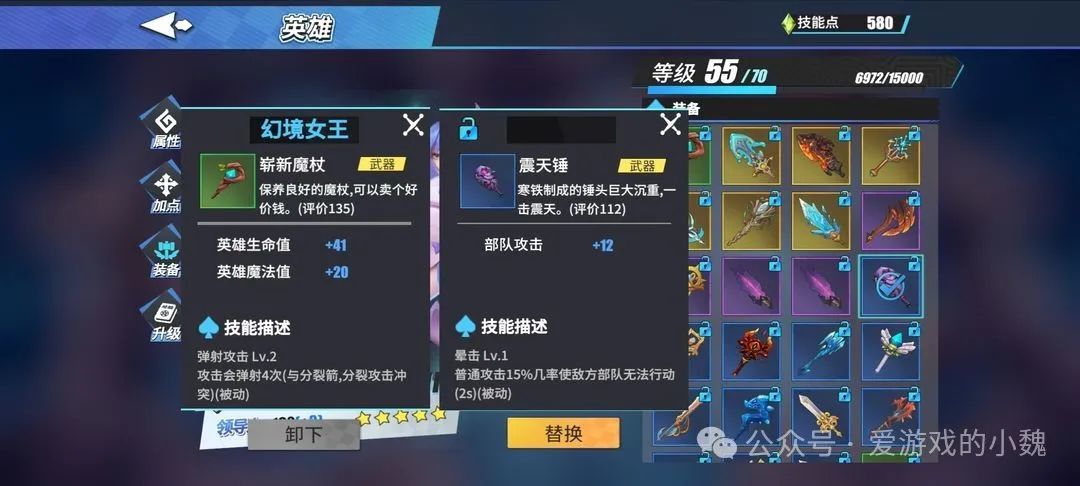 还有一个你后期才会用到的细节,当你的主力英雄到满级后,点到升级界面,右下角会有高级洗练选项。