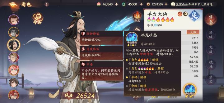 是目前版本中单体毒伤降防的一个高频出现的“辅助”,大招的毒伤2回合需要该角色进阶到3彩解锁,毒伤效果为“每一个目标出手回合降低最大生命值5%”,也就是毒20次直接死,而且这个毒是可叠加的,是打单体Boss必备,需要说明的是,其普攻也有35%中毒(具体概率忘了,大家进游戏自己看),所以在装备穿戴上建议是“命中套”“速度套”,命中套会给命中效果,什么意思?就是普攻不是35%中毒吗,它可以提高这个“命中效果概率”,而速度套则是为了保证自己的一个速度,先手放大招,给对面套降防50%,进而给单体爆发队友吃到降防福利,以达到输出尽可能最大化效果。