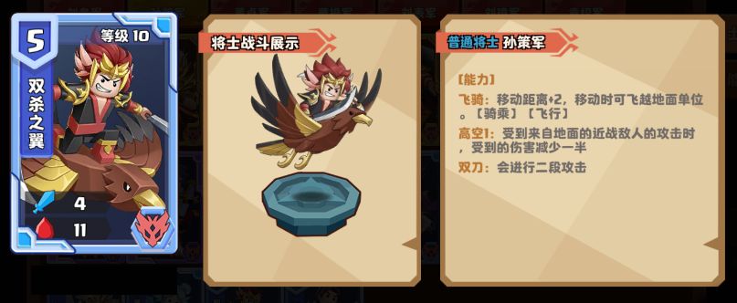 最主要的是,孙策还是【飞行】单位,配合【奔袭行动】能直接飞跃敌方地面将士,直接飞到敌方主公的最后一排造“小黄鸡”。如果配合上孙权触发【兄弟同心】,伤害更能翻上一倍。