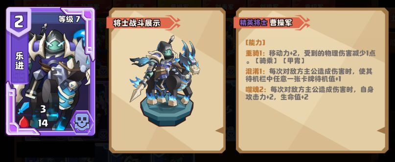 1.乐进:最强精英快攻【骑乘】将士,没有之一。只要伤到敌方主公,就能持续成长,还能干扰敌方手牌;但由于不会飞,而且初始攻击力非常低,所以经常会被各种普通将士拦住。有了【奔袭行动】,乐进再也不怕被阻挡,可以直接开始打主公涨伤害,野蛮成长了。