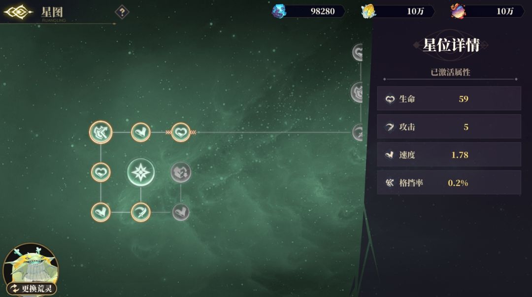※「星图」功能移至「荒灵图鉴」,原有「星图」属性数值调整,调整后所有「星图」属性(包括未上阵的荒灵)在战斗中全额生效。(原为上阵荒灵全额生效,其他荒灵生效20%)