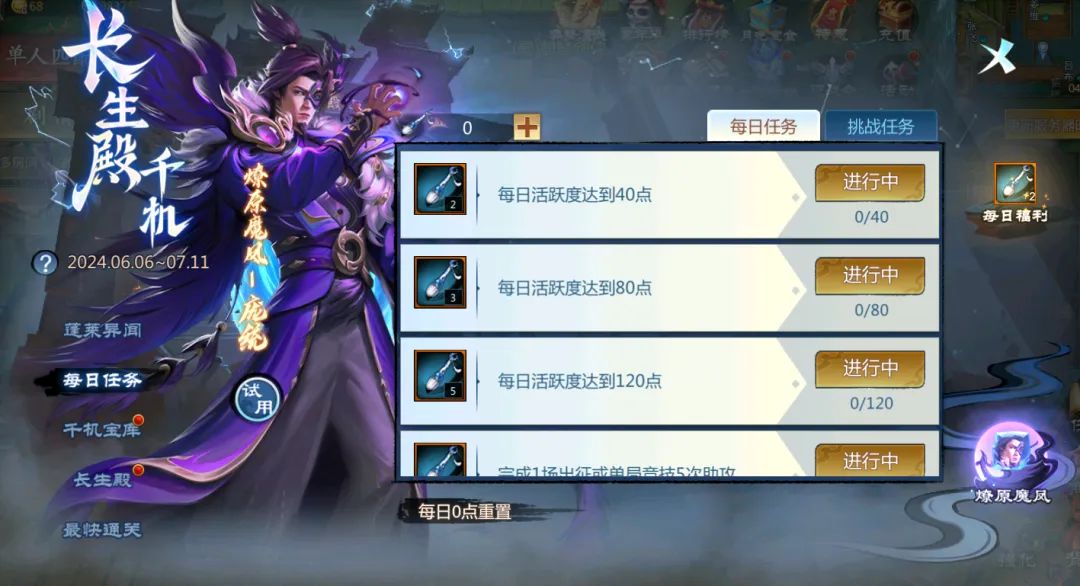入口:本页面左下方【长生殿挑战】完成五大挑战目标还有额外奖励可以领取!
