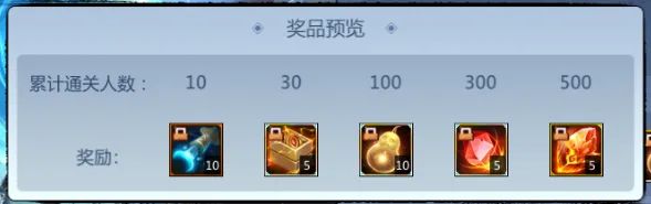 成功挑战长生殿*千机(任意模式)即为通关,全服累计通关人数达一定值,可领取全服奖励!