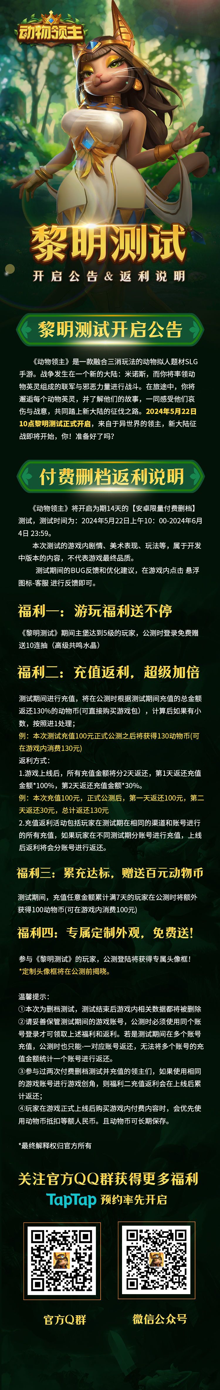 尊敬的领主大人们,《动物领主》首次付费删档测试将于今晚23:59结束