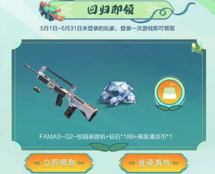5月1日-5月31日未登录的玩家,登录一次游戏即可领取