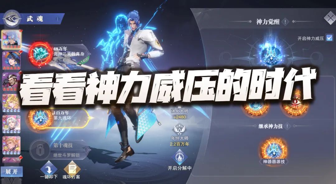 - 在开启8环的战斗模式下,8环的威压魂技和9环的神力技会同时存在于魂师界面上,相当于就是普攻+8环技能+9环技能的可选模式,比起原来的8环就多了个9环技能在旁边