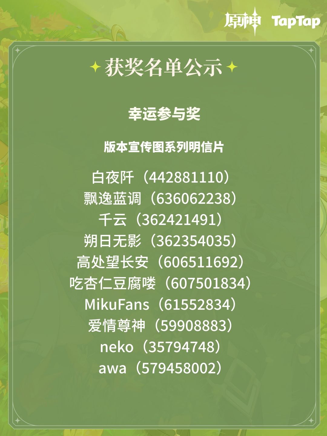 #纺坠终久之梦 版本打卡活动已结束,获奖名单详见图示~