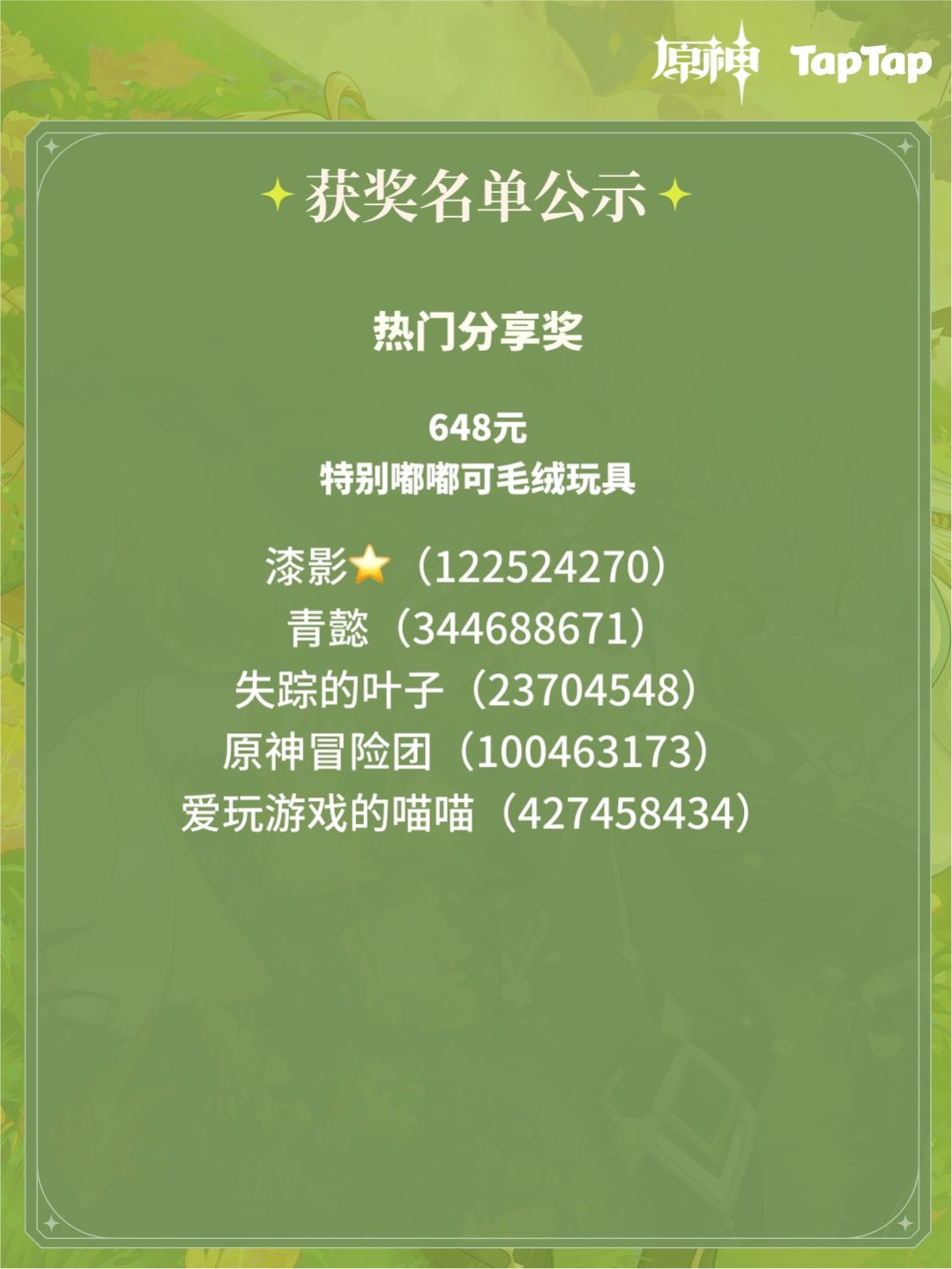 -周边奖励:本次活动中周边奖励均由原神提供,预计在结果公布后45个工日内发放