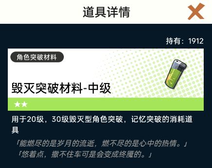 (注:不同职业的角色需要该职业的突破材料,如:角色的职业是毁灭就需要毁灭突破材料,要刷的也就是职业特训-毁灭)