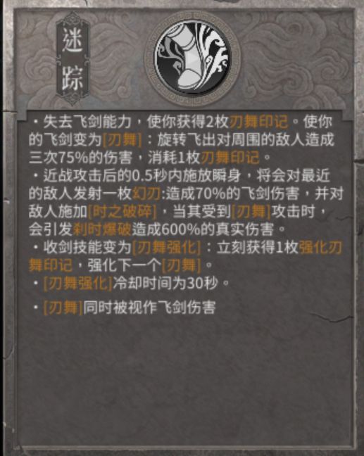 核心技能 顺势之刃 百刃倾泻 重伤 冷酷 破灭 走火入魔 魂多势众(这一套技能就算前期开荒也能用,前期如果血少的话可以考虑不用走火入魔)