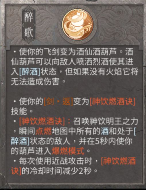 核心技能 野火 爆燃 龙之酒 强化龙之酒 走火入魔 魂多势众