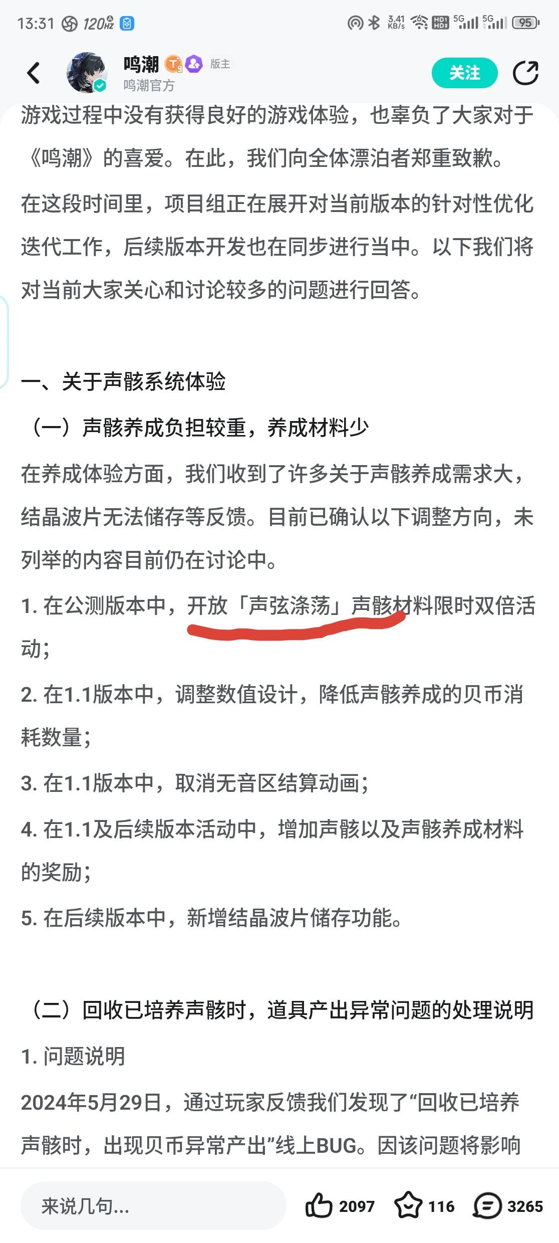 之前角色卡池的页面没上,所以我也就当你们公告还没做出来。今天角色卡池预告都来了,这个【声弦涤荡】的双倍呢?翻了好几下公告,怎么只有【特备训练】?这玩意儿有鸡毛用啊。