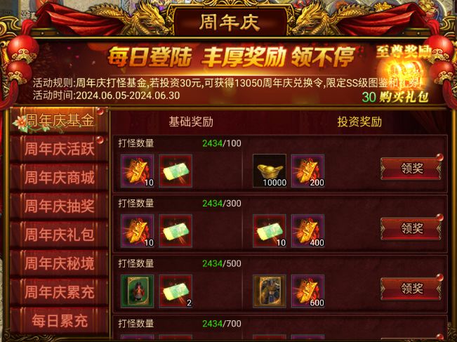周年庆基金【投资30元即可获得13050周年庆兑换令,限定SS级图鉴和抽奖券】