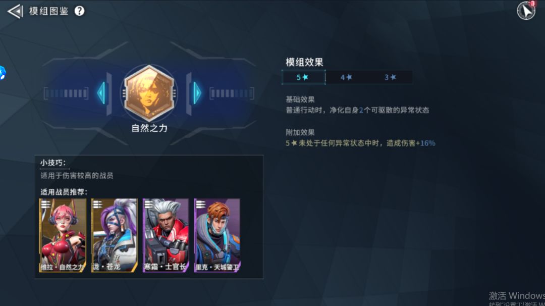 维拉·自然之力的主动模组提供稳定小额增伤以及脱离异常状态自我净化功能