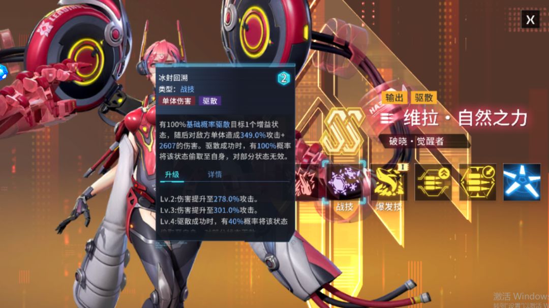 维拉·自然之力的战技效果:有100%基础概率驱散目标1个增益状态,随后对敌方单体造成349.0%攻击+2607的伤害。驱散成功时,有100%概率将该状态偷取至自身,对部分状态无效