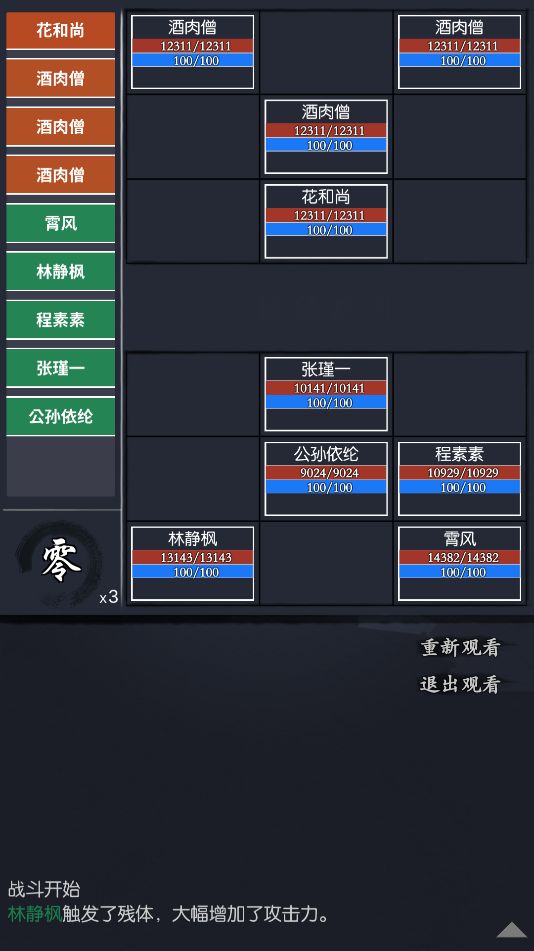 只要各位少侠暴免达标,只需要抗住对面3个酒肉僧的武学伤害
