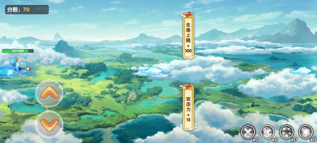 角色御剑飞行,会自动进行一定频率的射击。飞行中会遇到各种怪物,它们根据种类不同有不同的生命值,会以固定频率释放攻击。