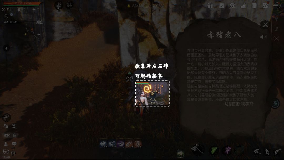 先简单说下轶事玩法,其主要就是收集在地图各个角落的石碑,上面记录了关于游戏中的各种剧情,通常都是明慧团的成员进行记录,收集越多轶事则越可以了解到游戏背后的故事,同时收集齐对应轶事后可以对人物提供增益,比如收集齐【未知遗迹】后可以让生命增加150。