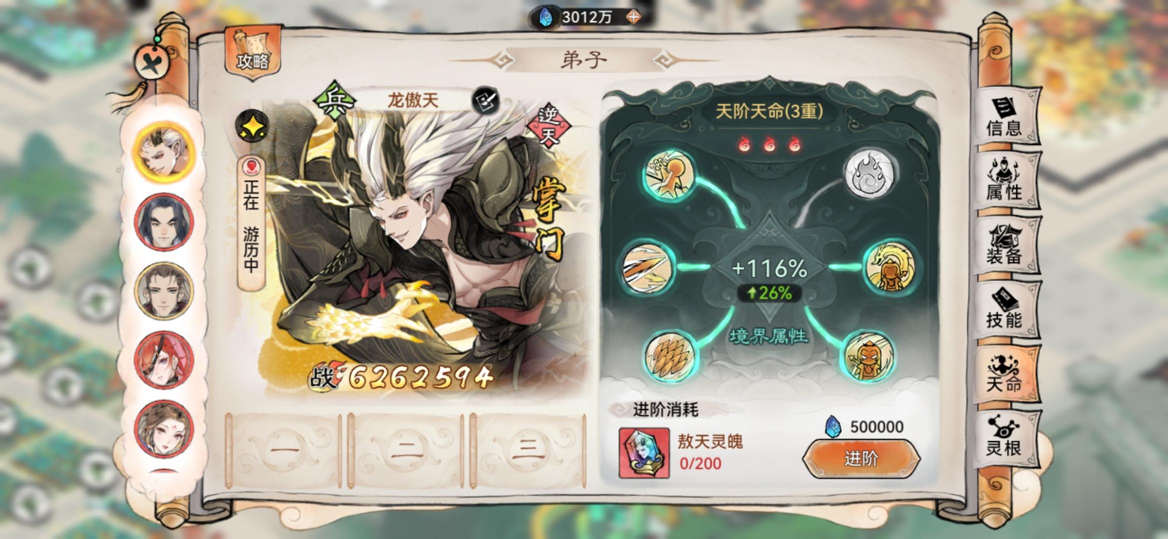 宗门战争龙人带修罗套一回合双动很好打,我已经把能打的宗门都打完了,微氪就能打过,尽量带天光道诀这种回血技能,加盾技能,盾会被吞加不上去,所以建议多搞回血和复活,有双舞带双舞