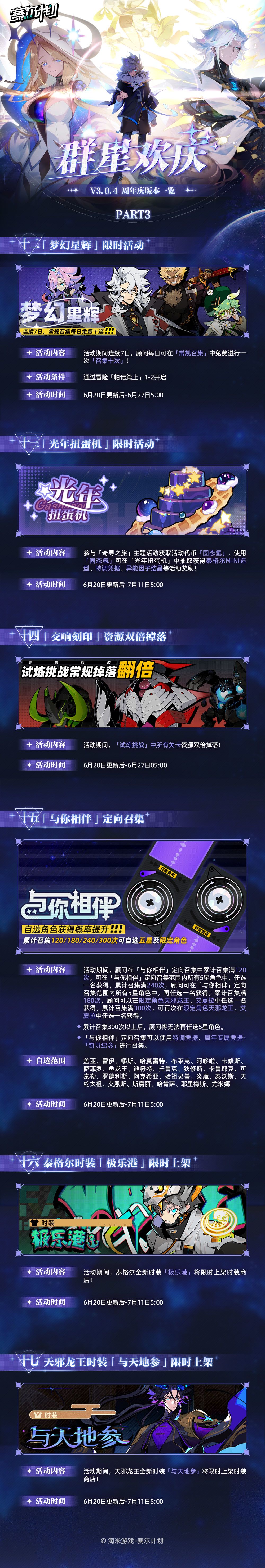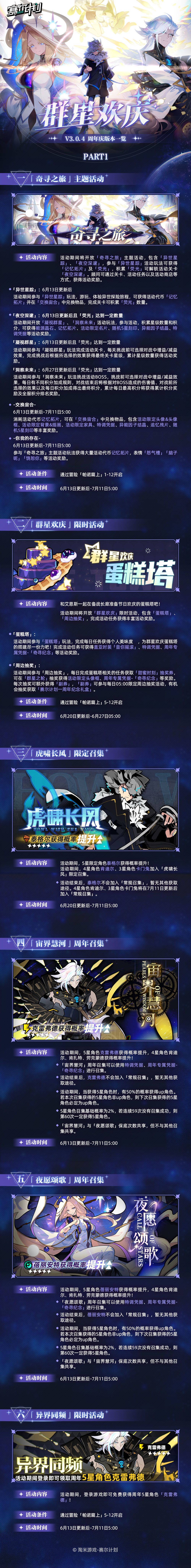《赛尔计划》V3.0.4 一周年庆版本「群星欢庆」将于6月13日上线!活动详情顾问可点击下方长图进行查看哦~
