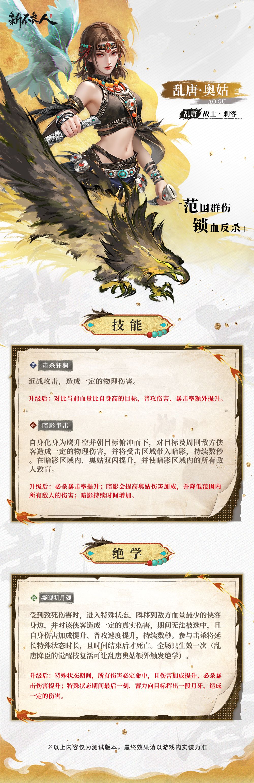 以上就是长庚奥姑的技能介绍,不知道少侠们觉得对于这位战力强悍又真性情的姑娘评价如何呢?随着长庚奥姑亮相,新不良人江湖乱唐阵营的拼图也正在逐渐补齐,欢迎少侠们在评论区交流一下你对现在乱唐阵营组合搭配的想法哦~