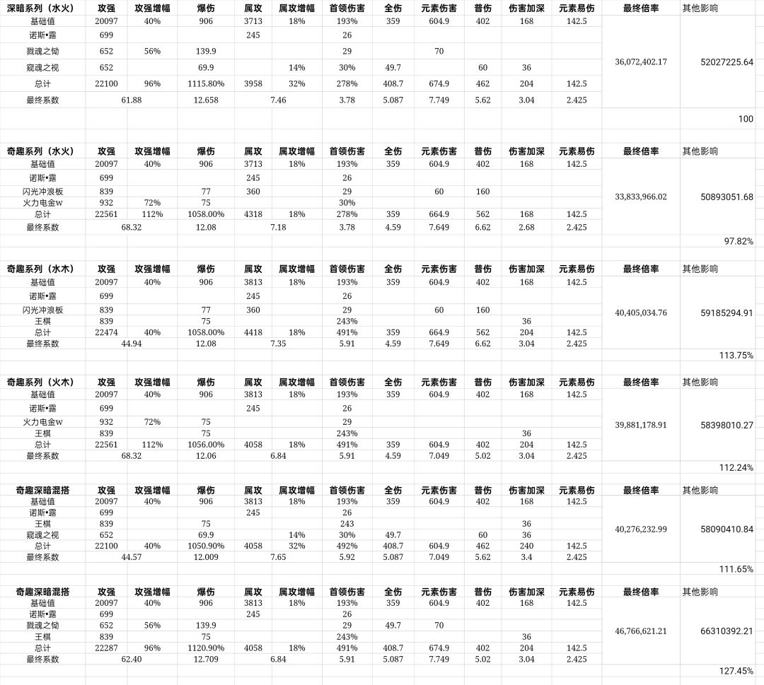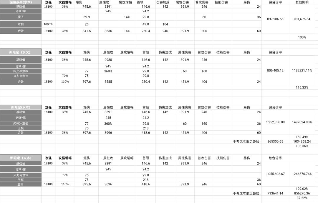 ps:水木在大约12秒叠层后与水火持平,并且在后续叠层上会逐渐超越水火,而在13秒内的竞速仙旅优水火,因此火的环境也挺尴尬的,目前来说火限定暂时还看不出用途