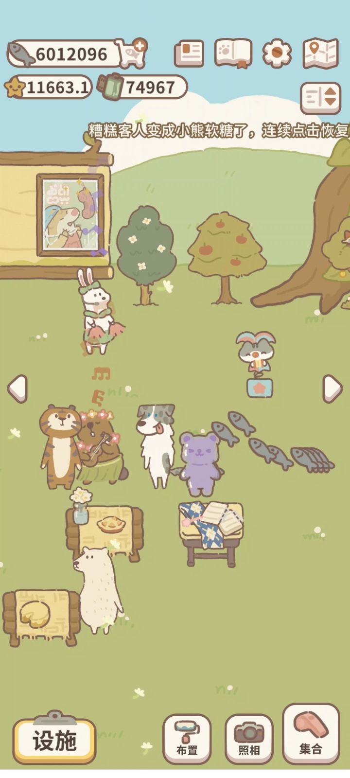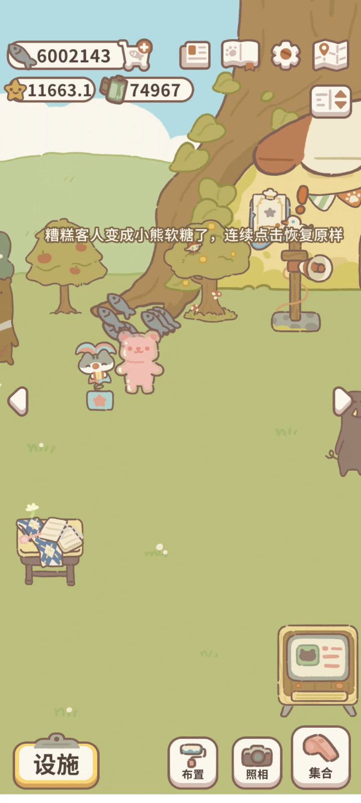 点击小熊软糖会持续掉落小鱼干 点击一段时间后客人会恢复原样