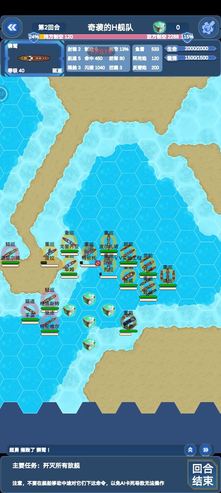 此时,敌军位置密集,我们直接点中间船只,可以做到范围最大