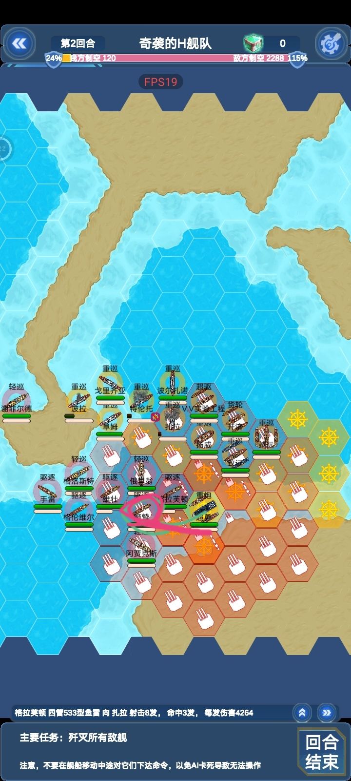 3.三舰以上时,必须点中间敌人才会实现此效果