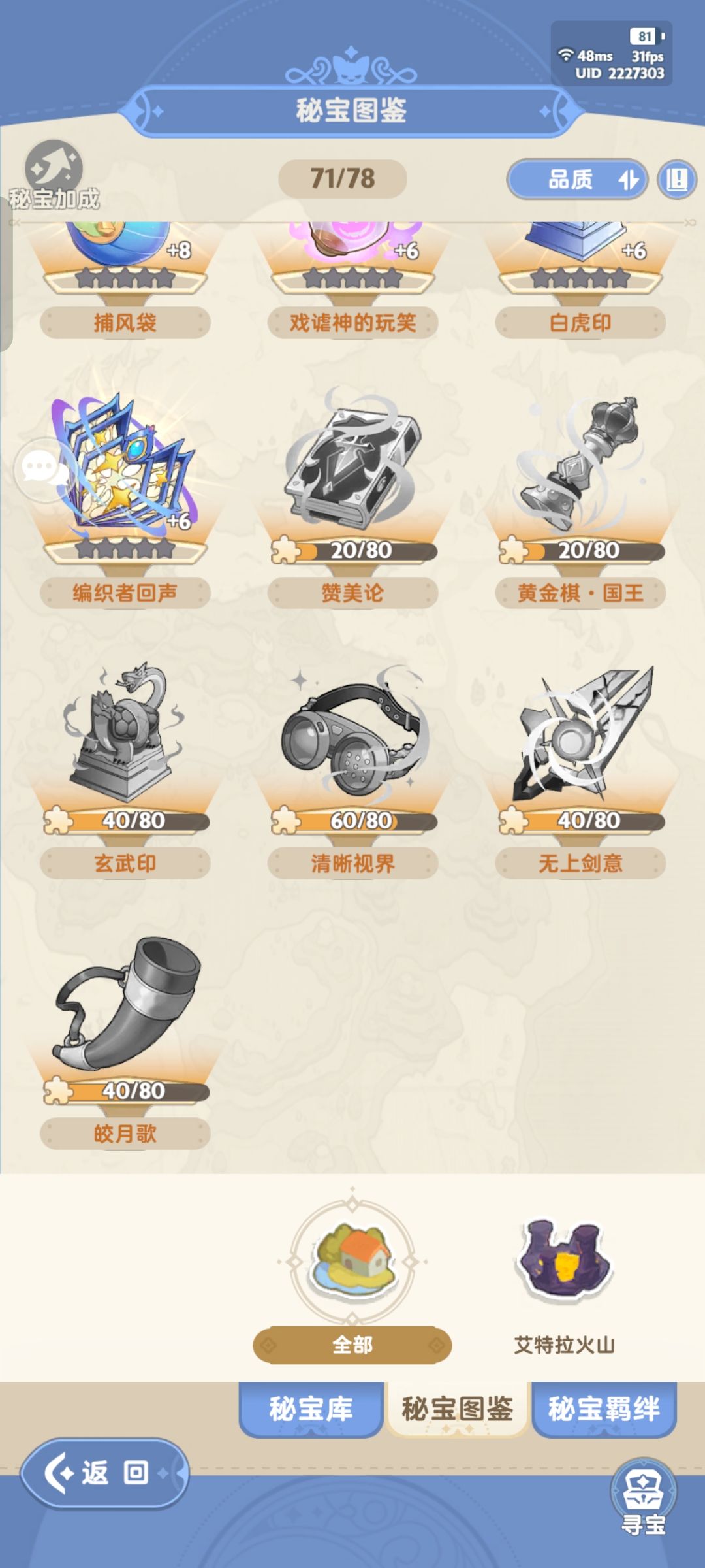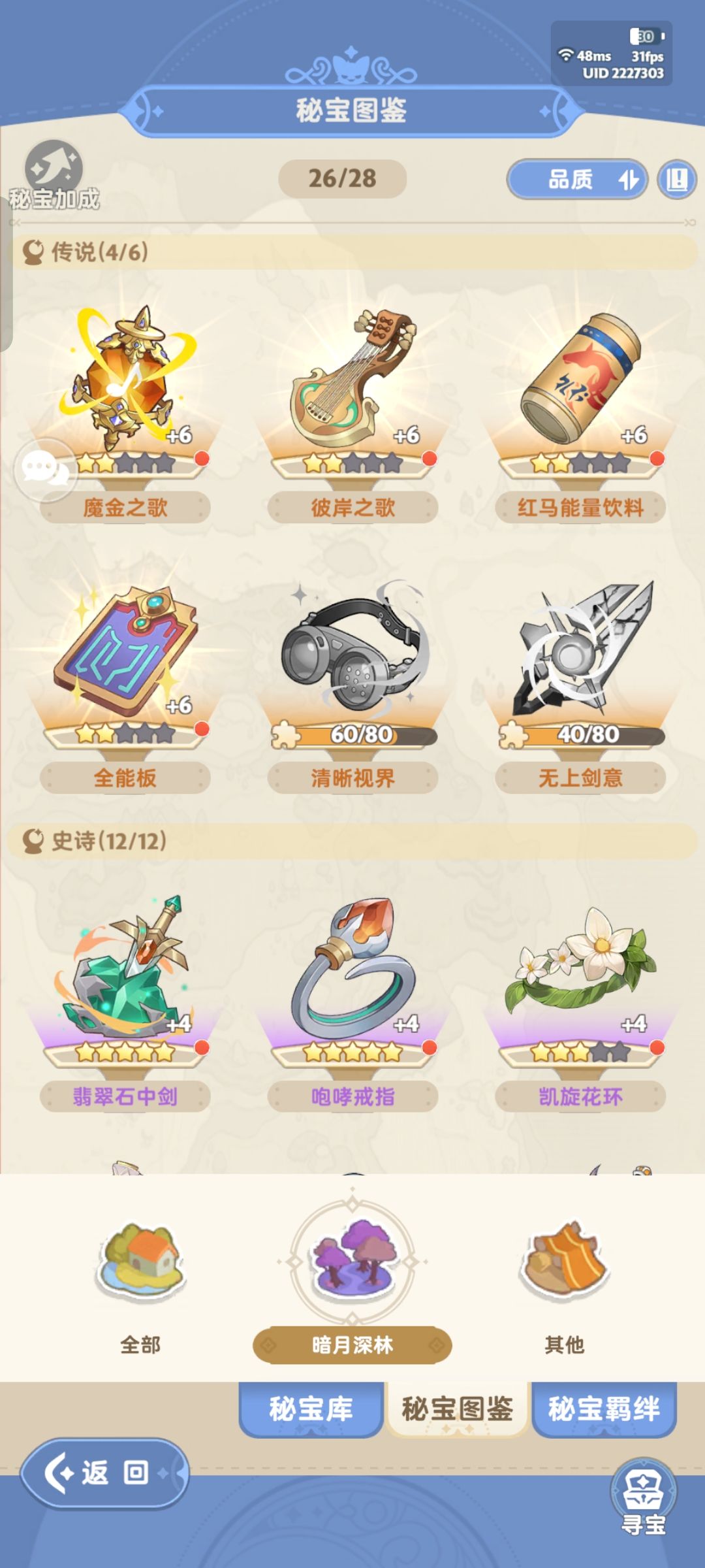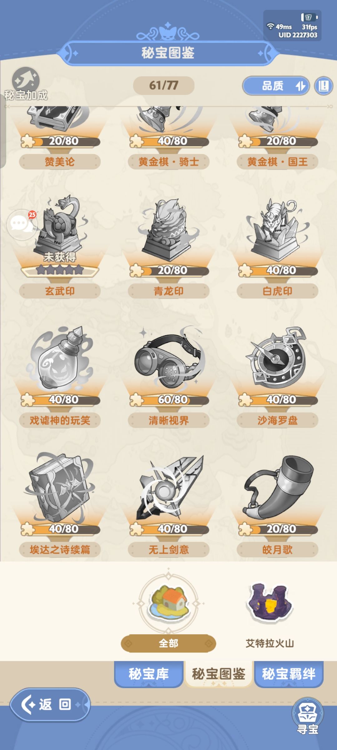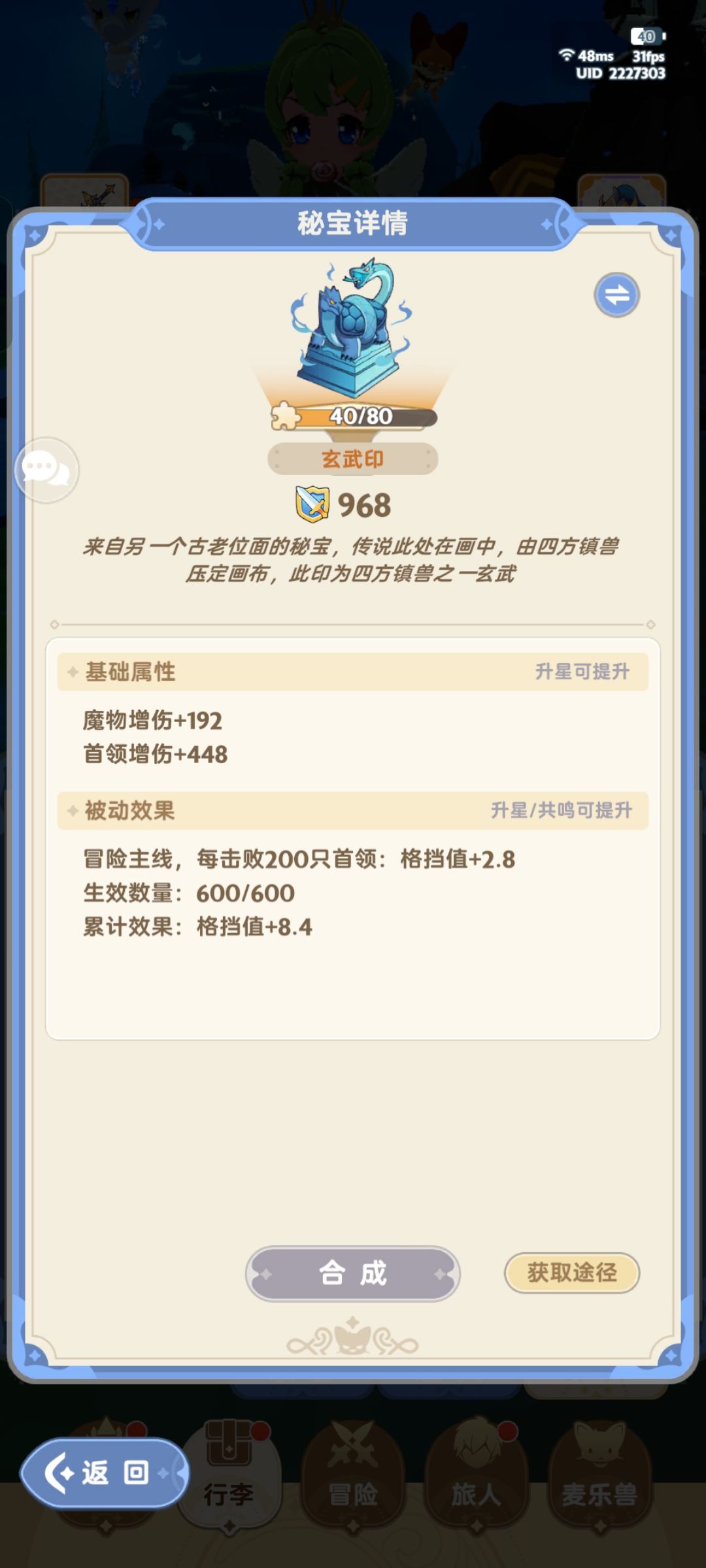 秘宝方面,四个仓管,应该算达到目标,遗憾是没有开到玄武印,至少丢了2暴击4格挡;