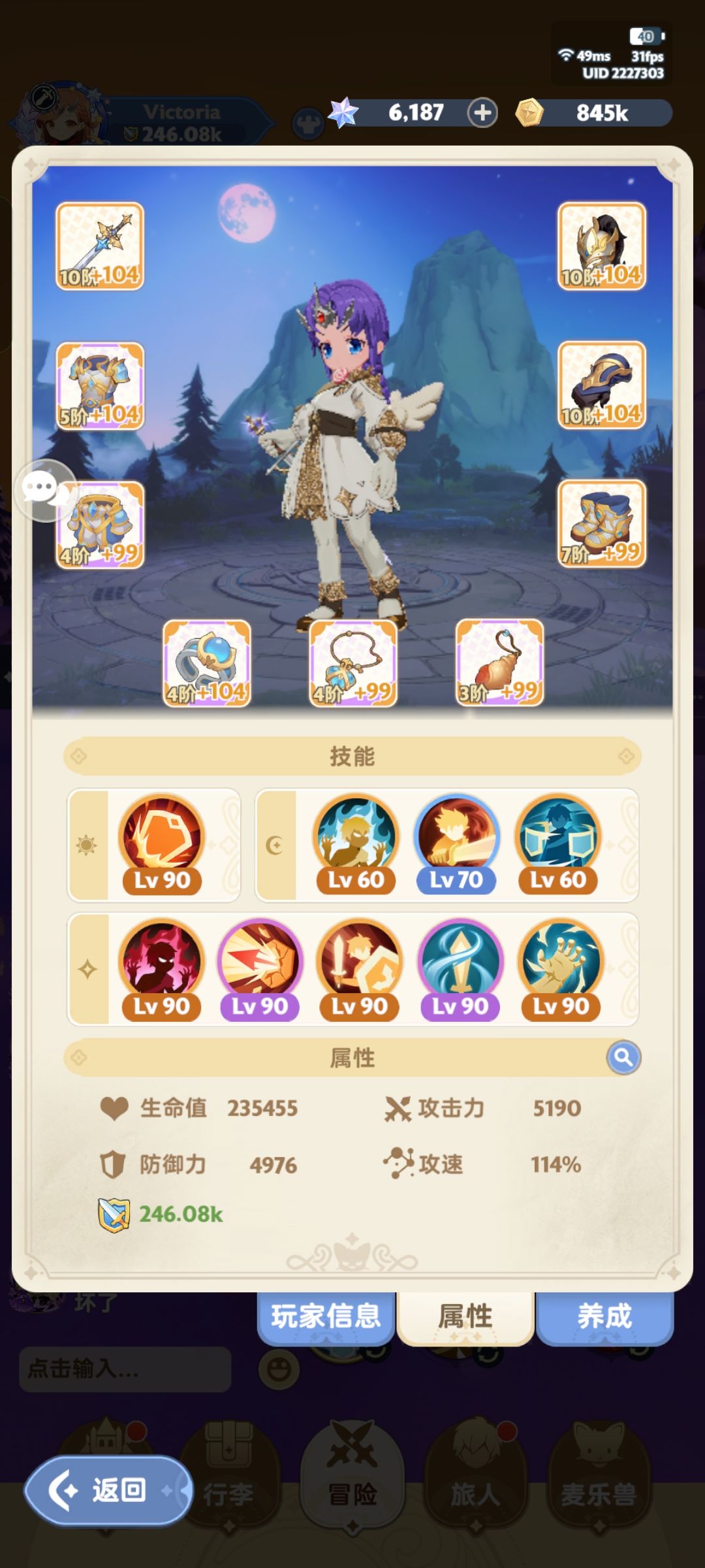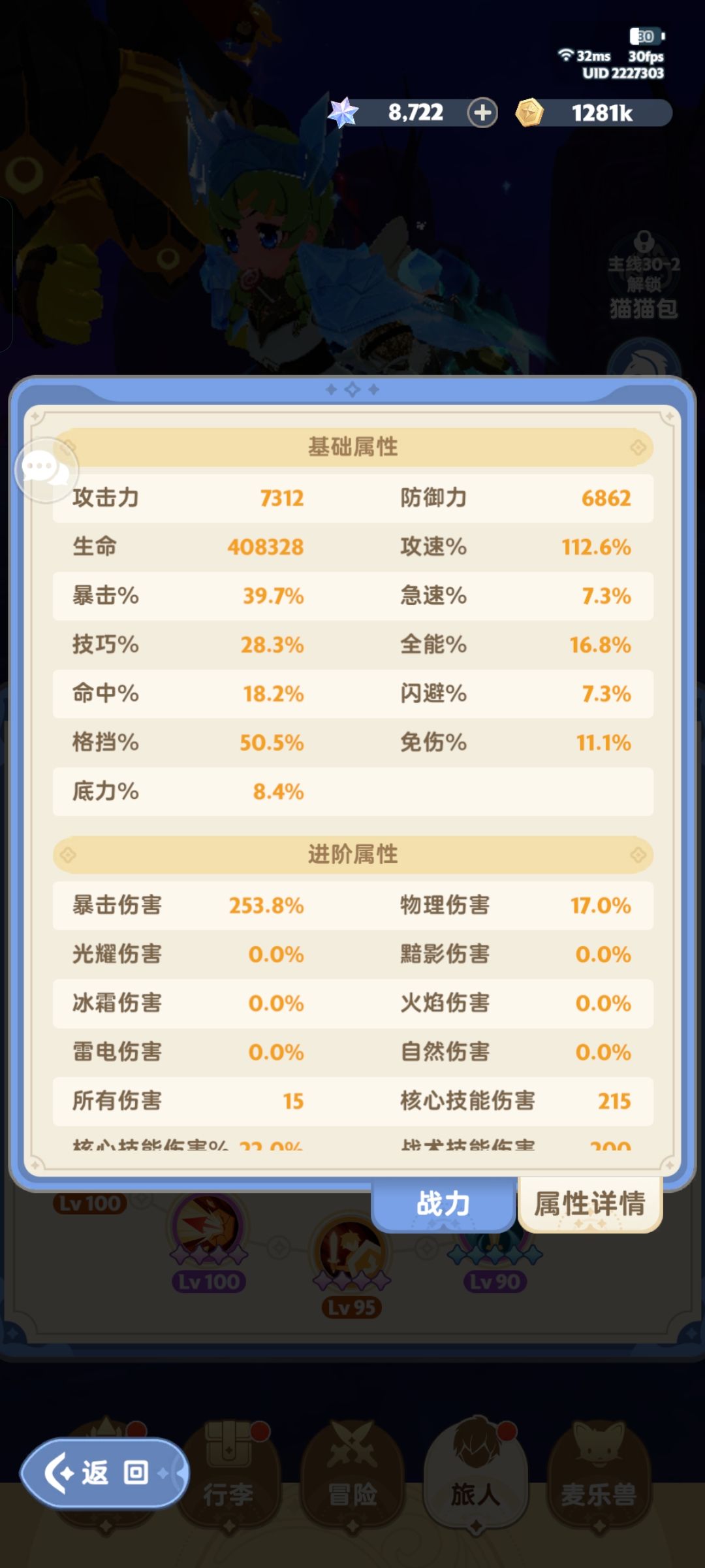 第二十三天,等级65,战力53.1。目前属性是50爆(裸30)20技巧20全能219爆伤,打龙比同战力输出职业低10%,打龙回声收益没有轮到你了高,一转剑士单体也确实拉胯。今天清旅团任务顺便测试天赋,出乎意料活力回环伤害比渴血居然要高一点,应该是主站冰马的缘故多打核心收益更高。战力提升很缓慢现阶段提战力就看橙秘宝,今天没出,目前一二期池子差6橙。