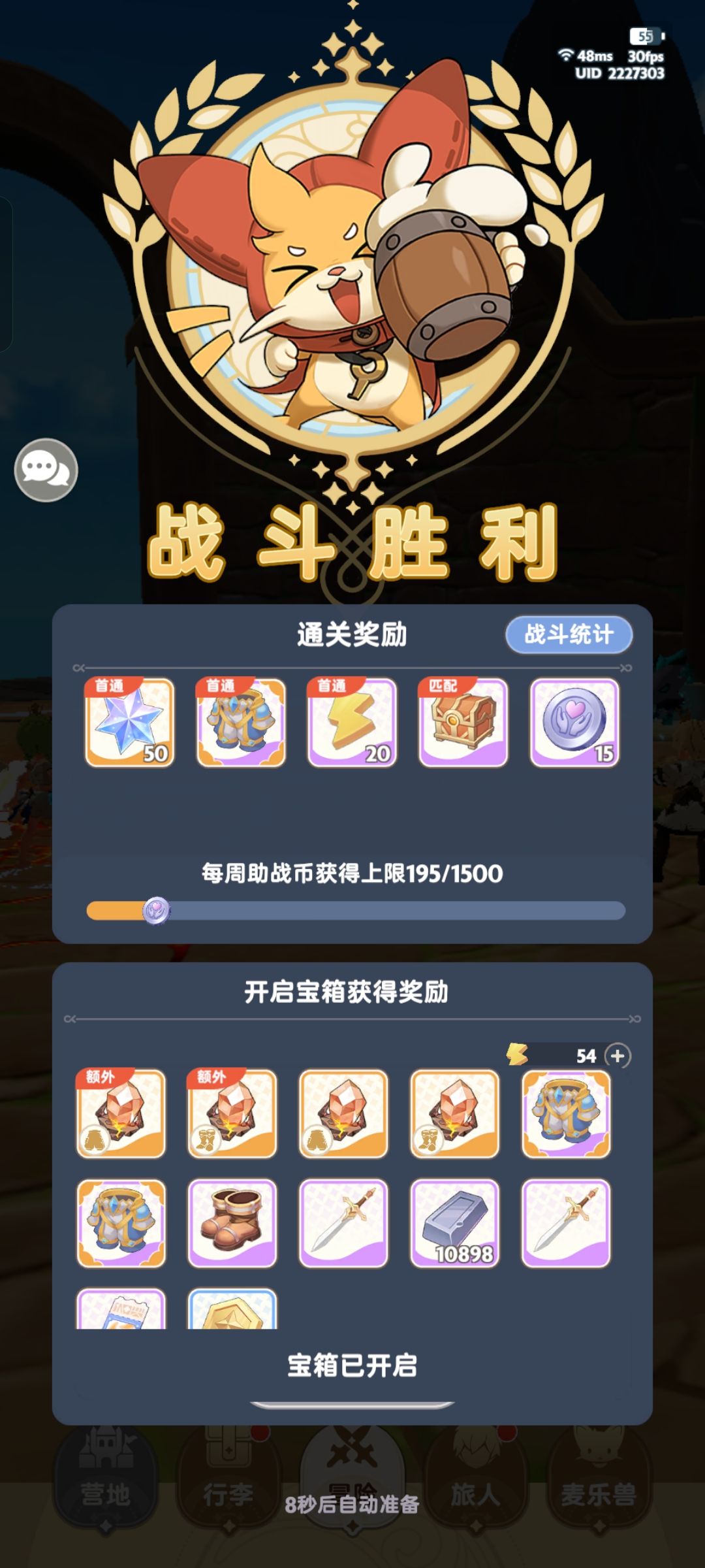 资源花费以能三星推图收手,今天运气一般,慢慢来吧。