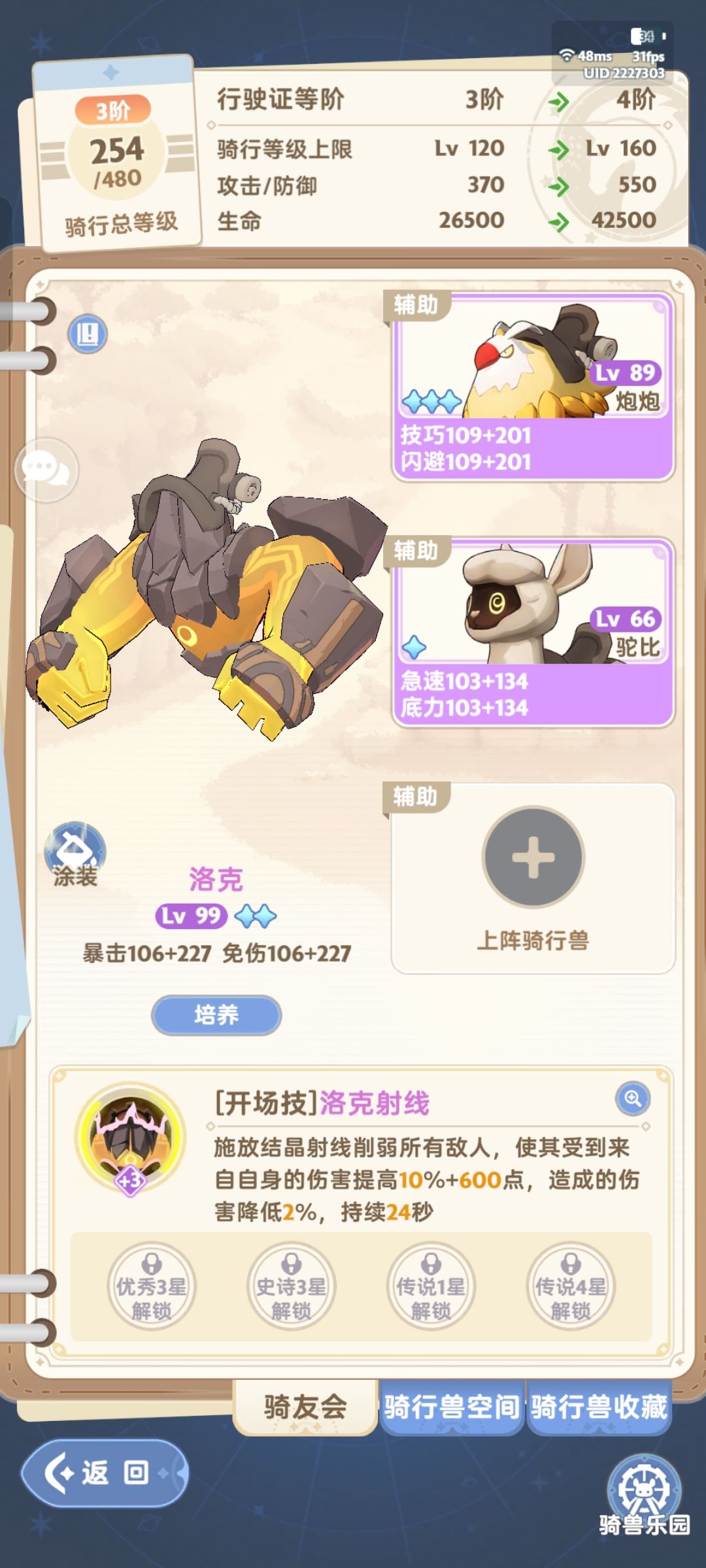 第四天,等级64,战力70k。宠物补到150抽,三马一隼,心愿全部用完,应该属于不非不欧那一档。实测是150抽宠物就只能紫三,后面开纸飞机会补20-30抽上金一。所以个人看法只要心愿最好还是抽2+1,零氪小氪材料不够,金一大于特技,紫五也能玩,抽多了也是放背包里当摆设,升到金五需要的橙闪比本体要多。