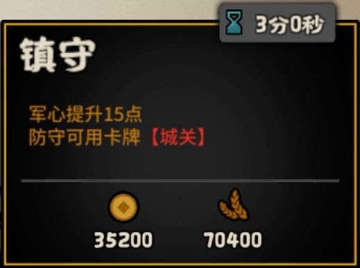 回到卡牌【城关】,城关拥有15%的总军规,并且本身的生命成长有4,同时每隔10s会降低自身军规召唤一队援军。