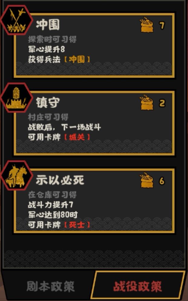 这个政策的核心效果就在于【死士】这张卡,这张卡效果很强,但是不好用。