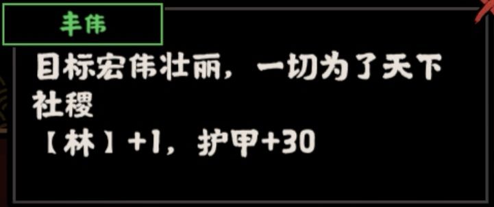 先说丰伟的性格:林争道+1,获得30点护甲。