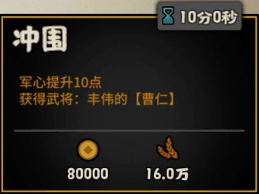 军心达到80时,战斗力提升20,获得卡牌【死士】
