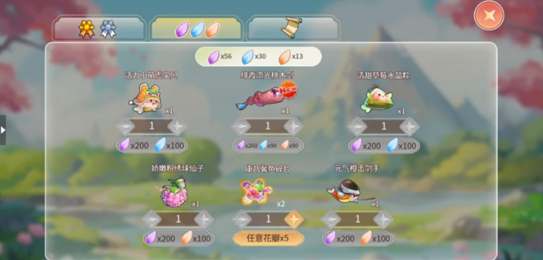 点击传送门让宝剑进入下一关,进入下一关之前您可以进行开宝箱玩法,点击宝箱开启,可以获得红色和紫色宝石,累计进度可以获得花瓣和小鱼奖励。